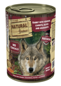 ארנבת עם בשר צבי, גזר, זיתים ואמרנט הוא מזון רטוב מלא, אולטרה-פרימיום והיפואלרגני, ללא דגנים, שפותח במיוחד עבור כלבים בוגרים.