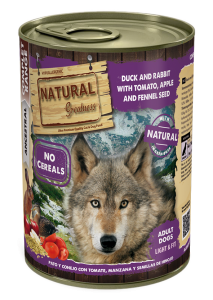 ברווז וארנבת עם עגבנייה, תפוח עץ וזרעי שומר הוא מזון רטוב מלא, אולטרה-פרימיום והיפואלרגני, ללא דגנים, שפותח במיוחד עבור כלבים בוגרים.