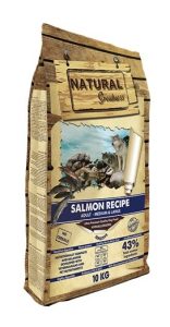 Natural Greatness Salmon Recipe הוא מזון על־פרימיום (Ultra Premium) טבעי, היפואלרגני ומונופרוטאין (מכיל חלבון ממקור חי אחד – סלמון).